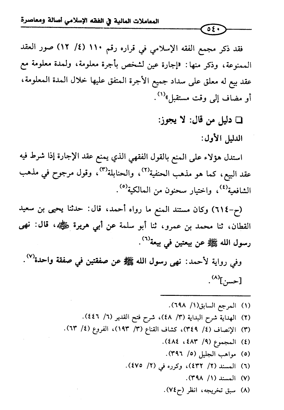 (ح-٦١٤) وكان مستند المنع ما رواه أحمد، قال: حدثنا يحيى بن سعيد القطان، ثنا محمَّد بن عمرو، ثنا أبو سلمة عن أبي هريرة - رضي الله عنه -، قال: نهى رسول الله - صلى الله عليه وسلم - عن بيعتين في بيعة (¬٦).