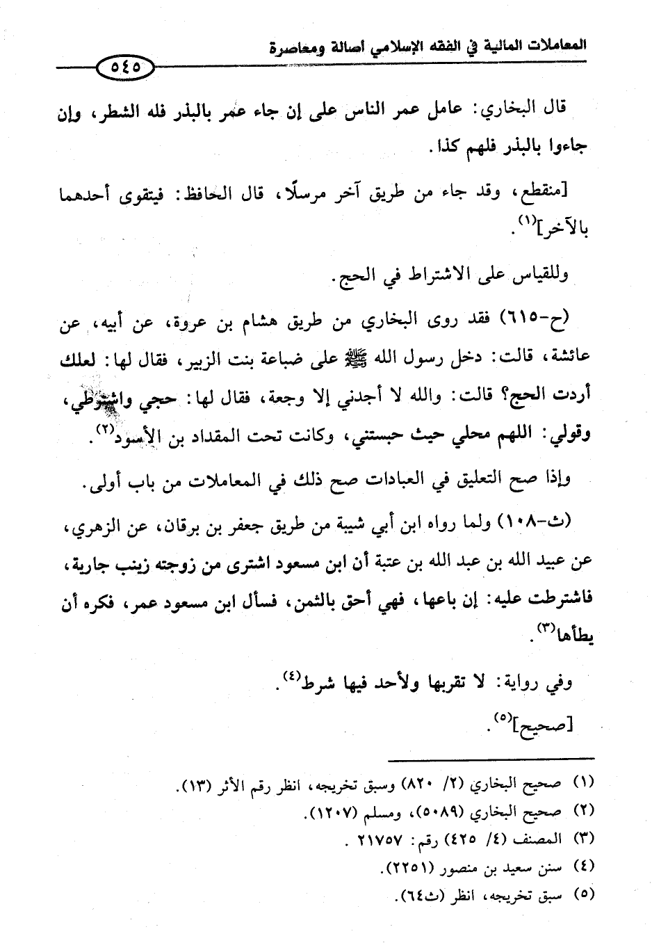 وإذا صح التعليق في العبادات صح ذلك في المعاملات من باب أولى. (ث - ١٠٨) ولما رواه ابن أبي شيبة من طريق جعفر بن برقان، عن الزهري، عن عبيد الله بن عبد الله بن عتبة أن ابن مسعود اشترى من زوجته زينب جارية، فاشترطت عليه: إن باعها، فهي أحق بالثمن، فسأل ابن مسعود عمر، فكره أن يطأها (¬٣).