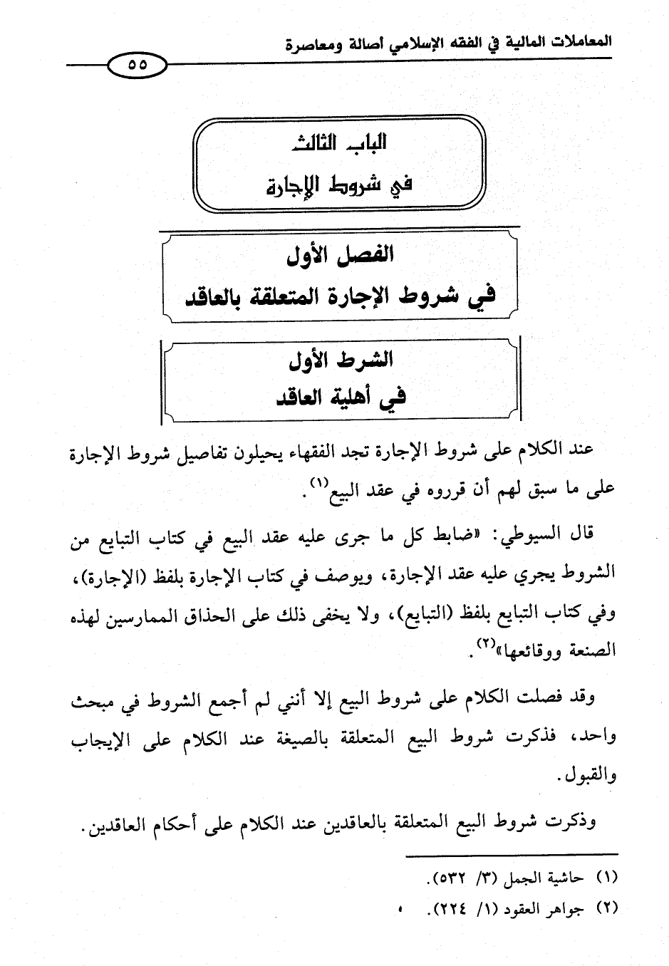 الفصل الأول في شروط الإجارة المتعلقة بالعاقد