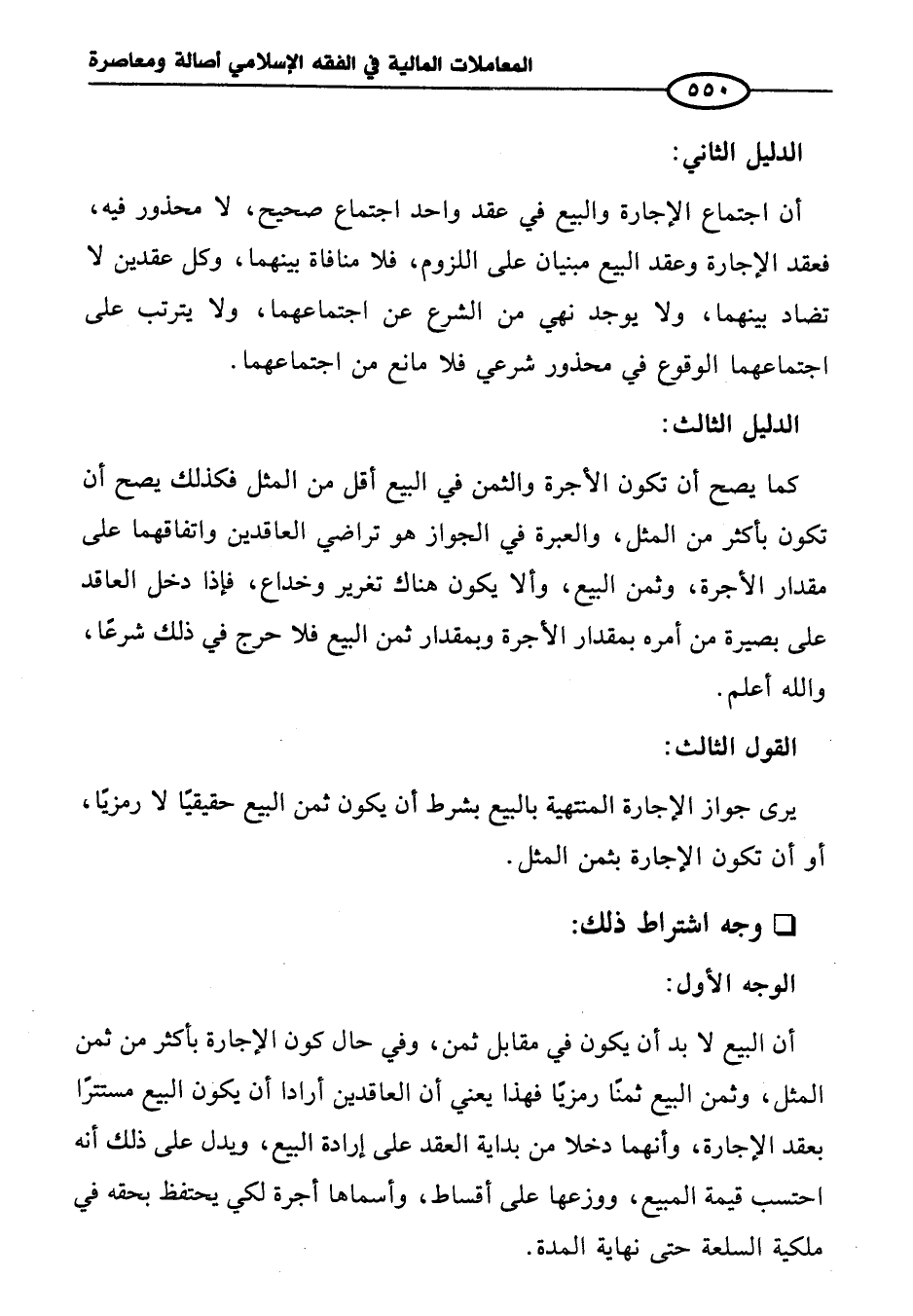 يرى جواز الإجارة المنتهية بالبيع بشرط أن يكون ثمن البيع حقيقيًا لا رمزيًا، أو أن تكون الإجارة بثمن المثل.