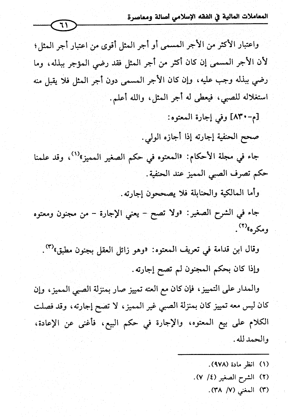 [م - ٨٣٠] وفي إجارة المعتوه: