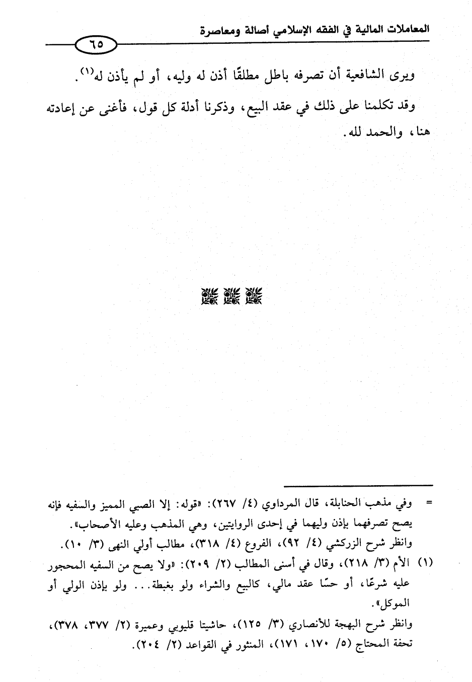 (¬١) الأم (٣/ ٢١٨)، وقال في أسنى المطالب (٢/ ٢٠٩): " ولا يصح من السفيه المحجور عليه شرعاً، أو حساً عقد مالي، كالبيع والشراء ولو بغبطة ... ولو لإذن الوليّ أو الموكل".