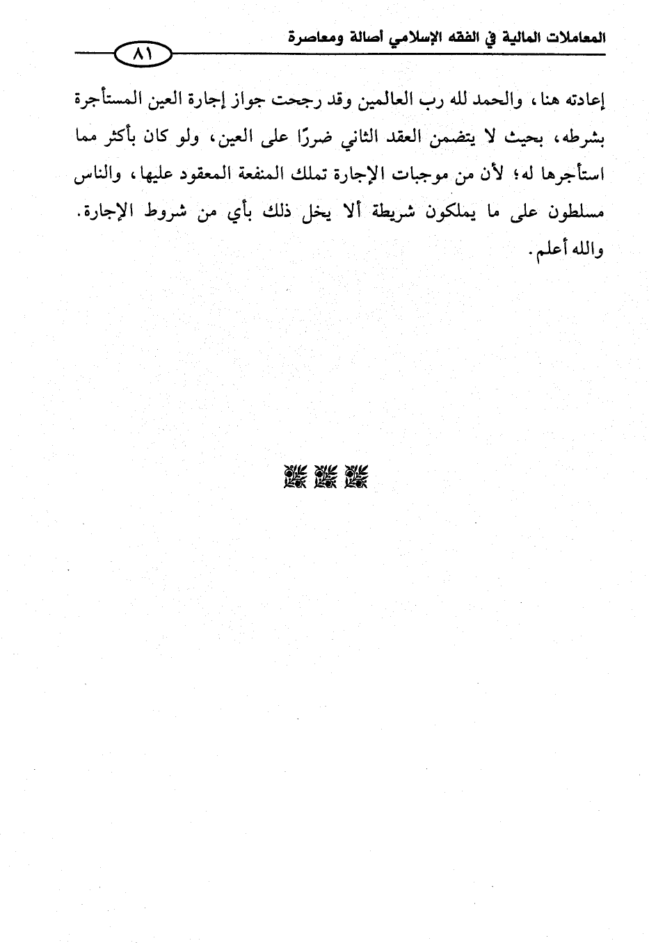إعادته هنا، والحمد لله رب العالمين وقد رجحت جواز إجارة العين المستأجرة بشرطه، بحيث لا يتضمن العقد الثاني ضررًا على العين، ولو كان بأكثر مما استأجرها له؛ لأنّ من موجبات الإجارة تملك المنفعة المعقود عليها، والناس مسلطون على ما يملكون شريطة ألا يخل ذلك بأي من شروط الإجارة. والله أعلم.
