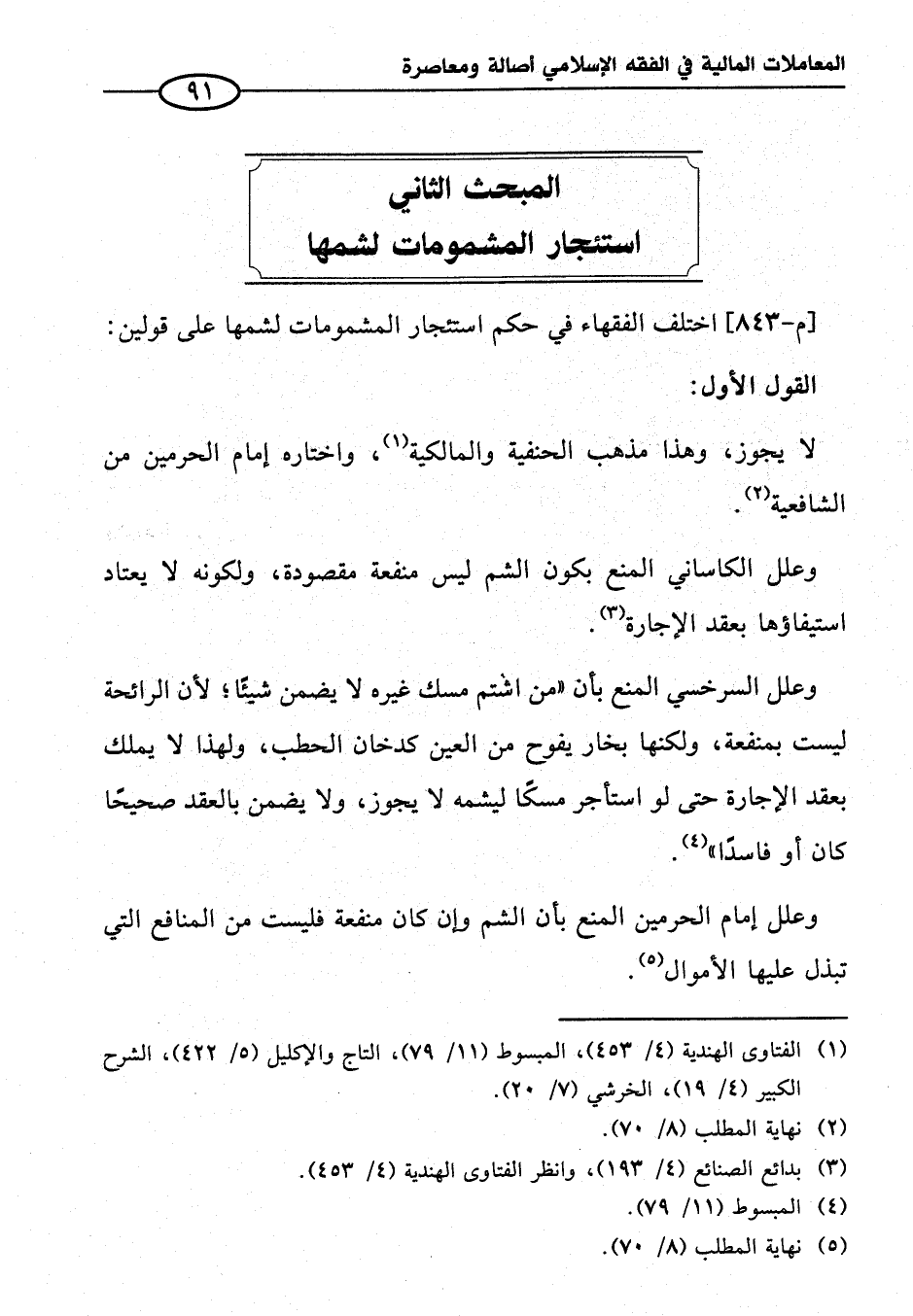 المبحث الثاني استئجار المشمومات لشمها