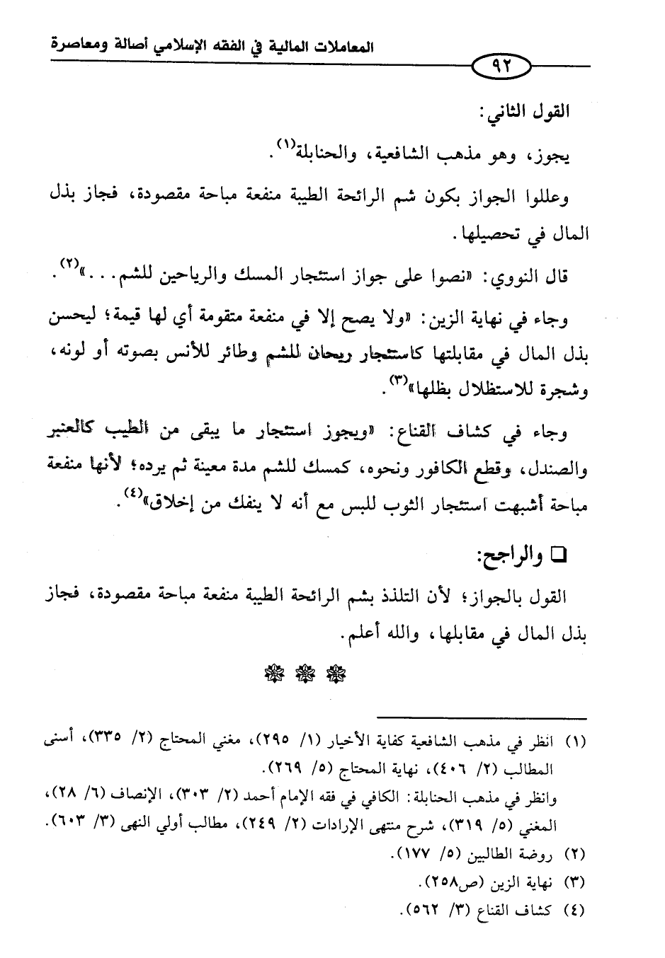قال النوويّ: "نصوا على جواز استئجار المسك والرياحين للشم ... " (¬٢).
