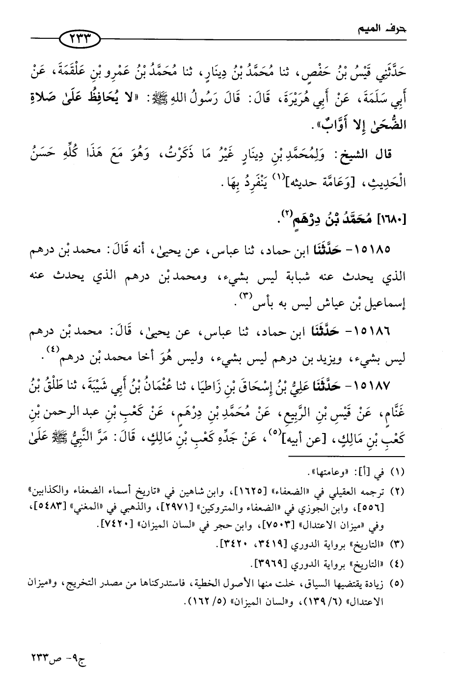 قال الشيخ: ومُحمد بن درهم لا أعلم له كثيرا من الحديث، ويشبه أن يكون كوفيا.