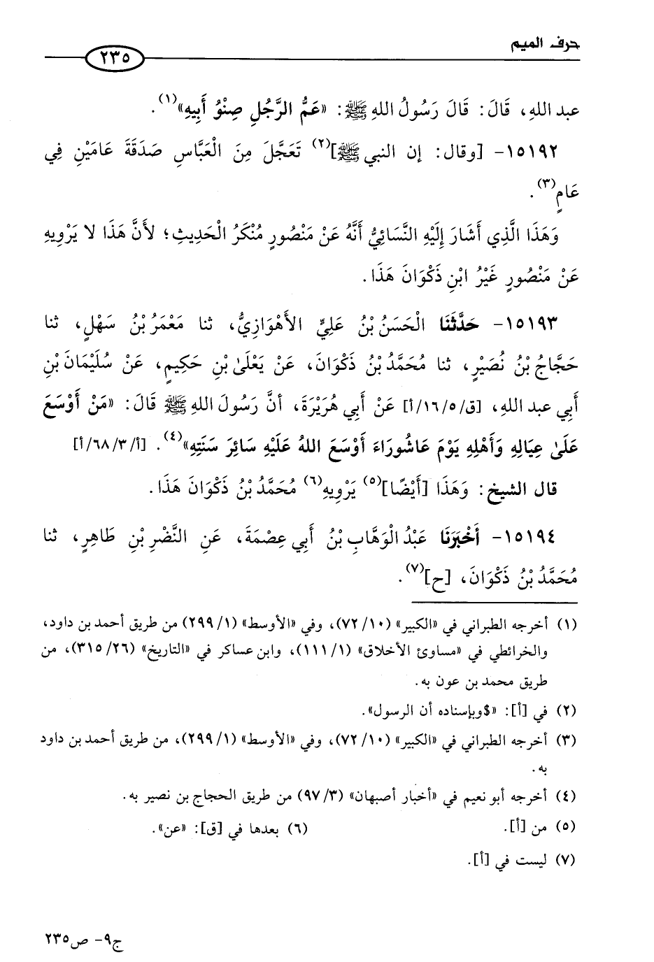 15194 - أخبرنا عَبد الوهاب بن أبي عصمة، عن النضر بن طاهر، حَدثنا مُحمد بن ذكوان (ح)