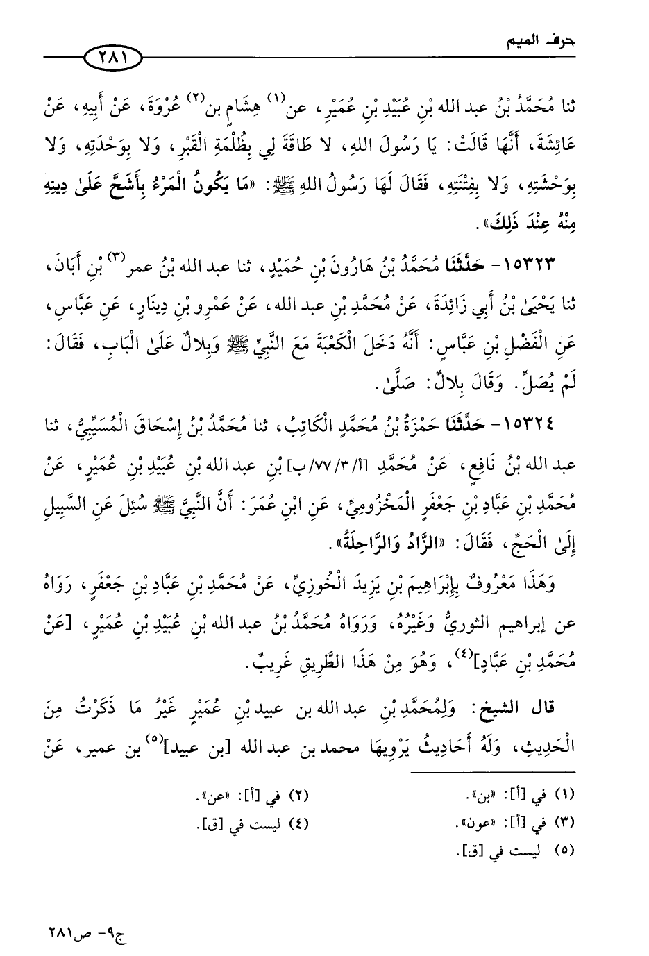 15324 - حَدثنا حمزة بن مُحمد الكاتب، حَدثنا مُحمد بن إسحاق المسيبي، حَدثنا عَبد الله بن نافع، عن مُحمد بن عَبد الله بن عُبيد بن عُمَير، عن مُحمد بن عباد بن جعفر المخزومي، عن ابن عُمر؛ أن النبي صَلى الله عَليه وسلم سئل عن السبيل إلى الحج، فقال: الزاد والراحلة.