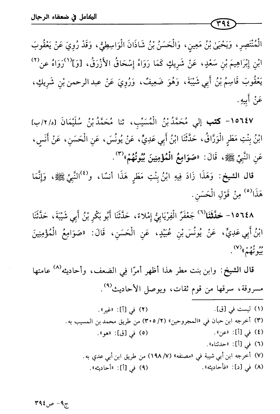 كتاب الكامل في ضعفاء الرجال لابن عدي - الرشد (اسم الجزء: 9)
