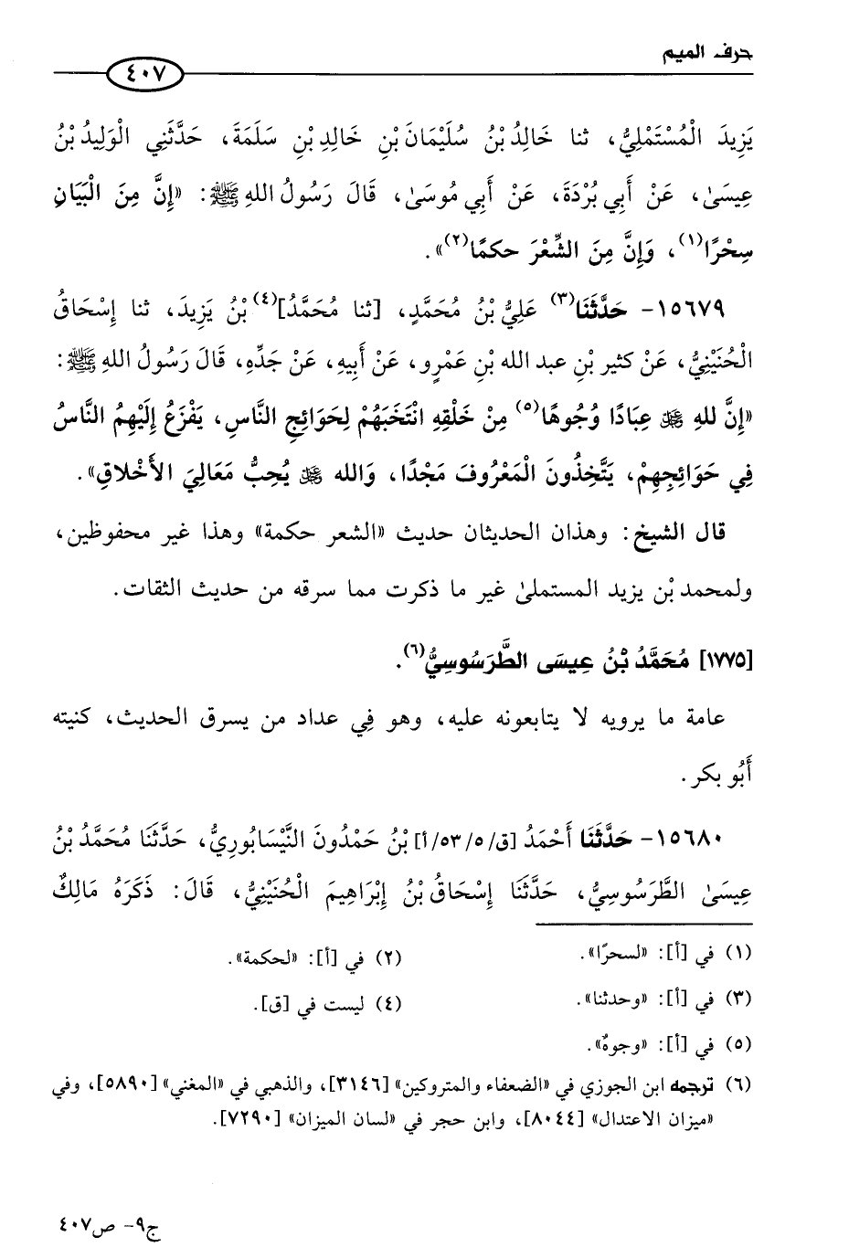 قال الشيخ: وهذان الحديثان: حديث الشعر حكمة، وهذا، غير محفوظين، ولمحمد بن يزيد المستملي غير ما ذكرت مما سرقه من حديث الثقات.