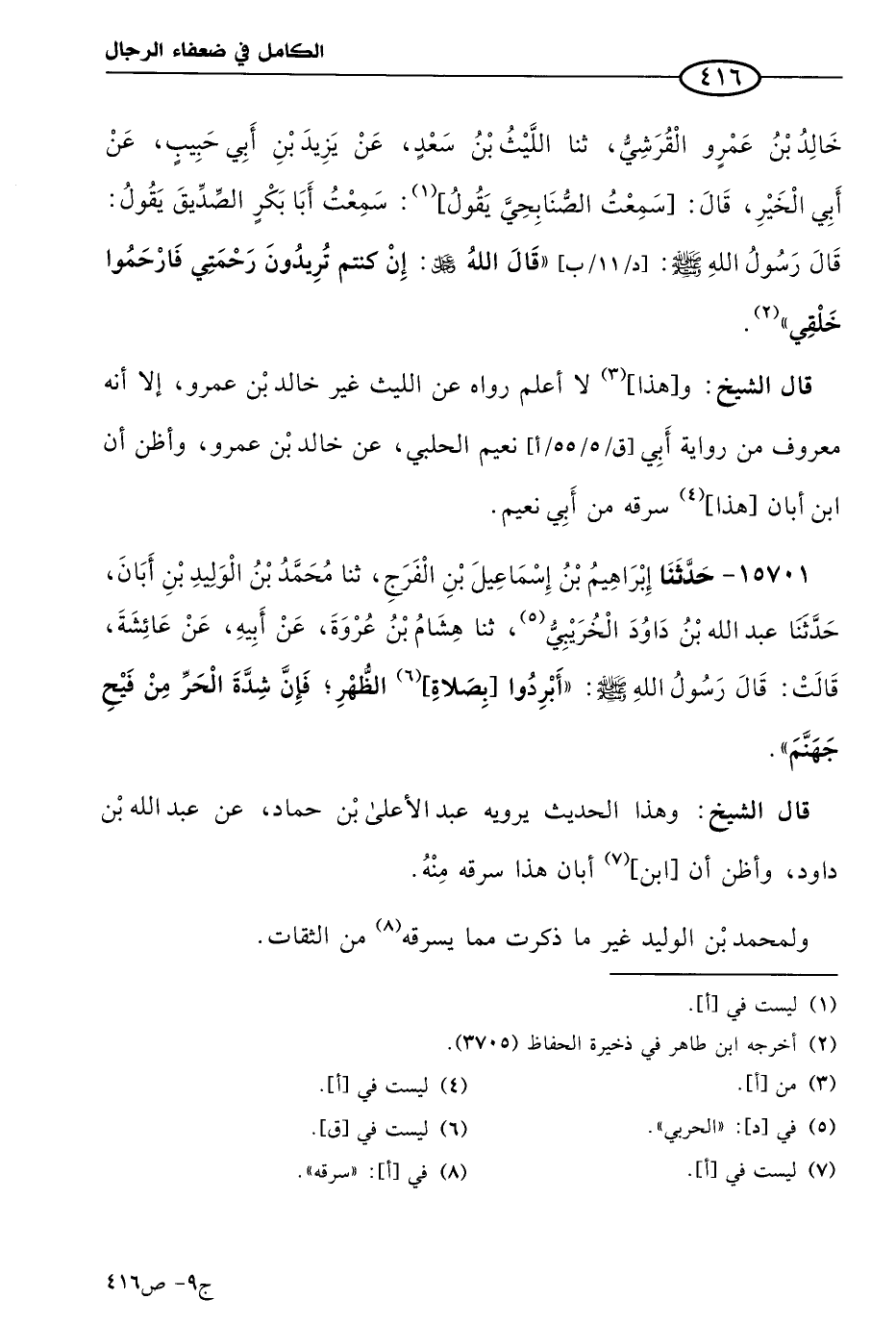 كتاب الكامل في ضعفاء الرجال لابن عدي - الرشد (اسم الجزء: 9)