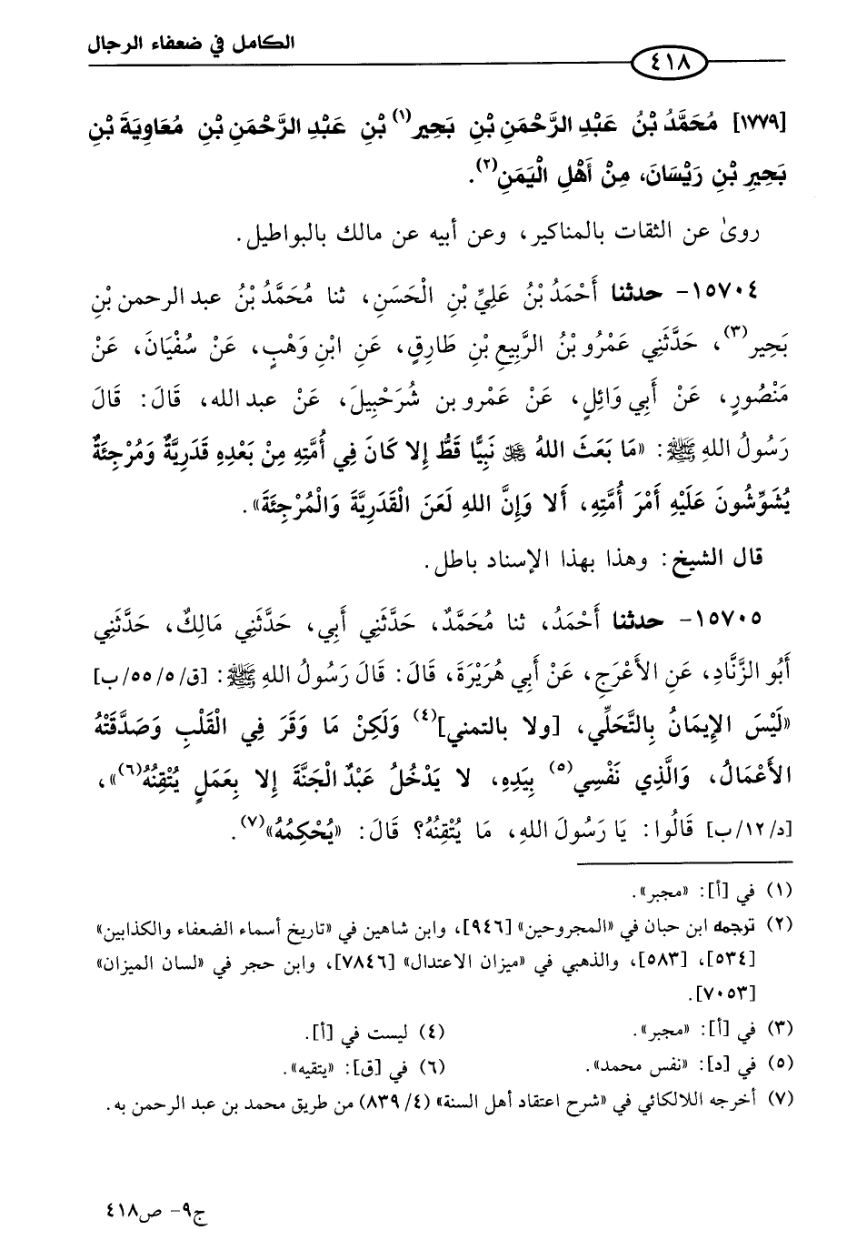 كتاب الكامل في ضعفاء الرجال لابن عدي - الرشد (اسم الجزء: 9)
