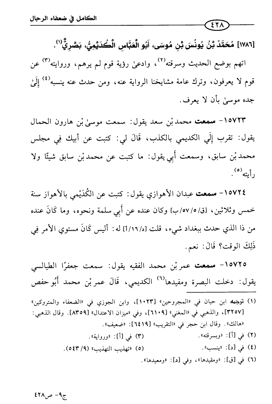 كتاب الكامل في ضعفاء الرجال لابن عدي - الرشد (اسم الجزء: 9)