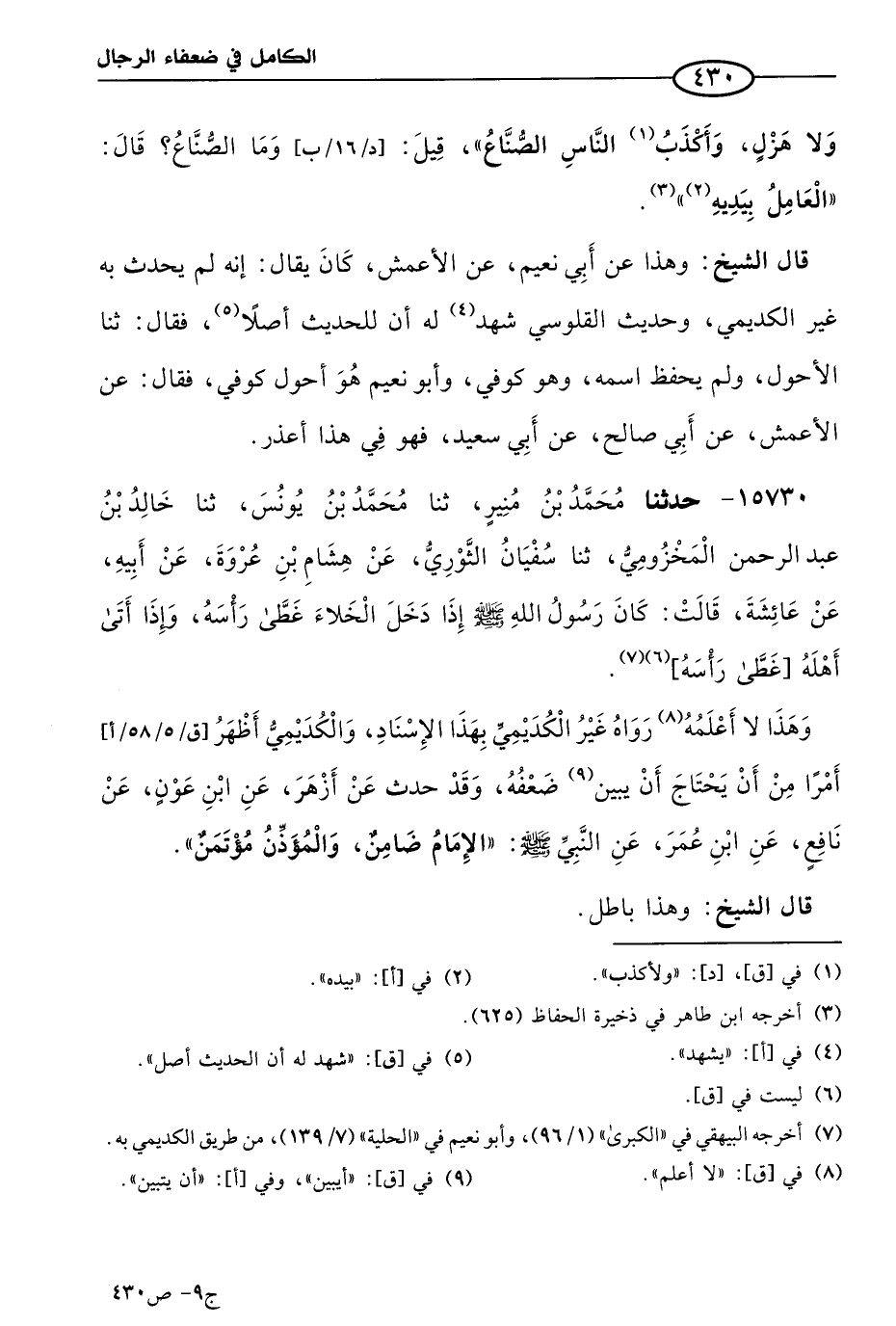 كتاب الكامل في ضعفاء الرجال لابن عدي - الرشد (اسم الجزء: 9)