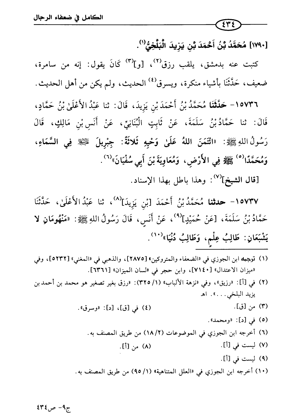 كتاب الكامل في ضعفاء الرجال لابن عدي - الرشد (اسم الجزء: 9)