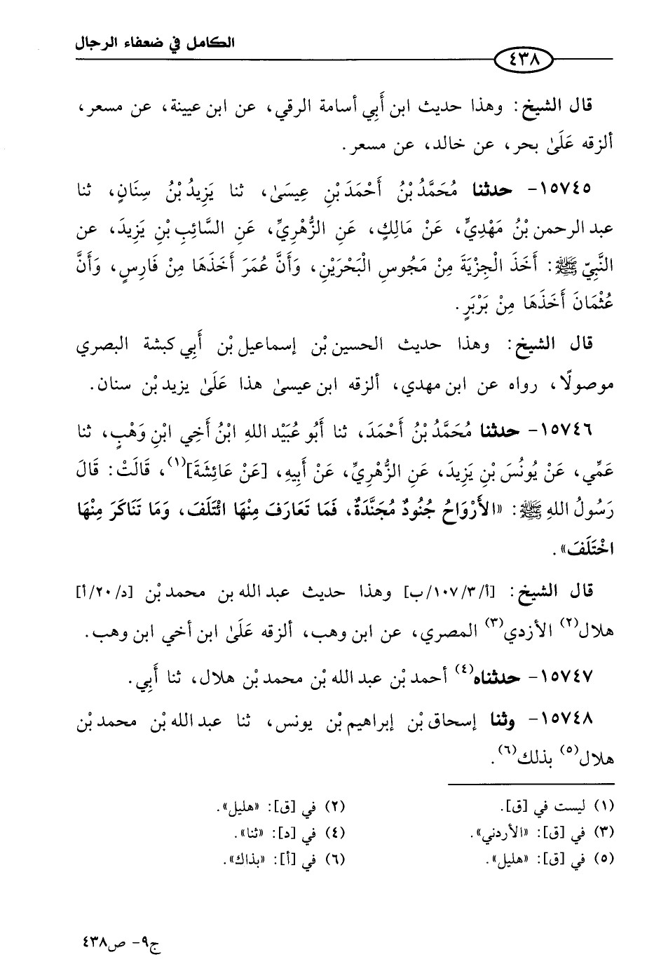 كتاب الكامل في ضعفاء الرجال لابن عدي - الرشد (اسم الجزء: 9)