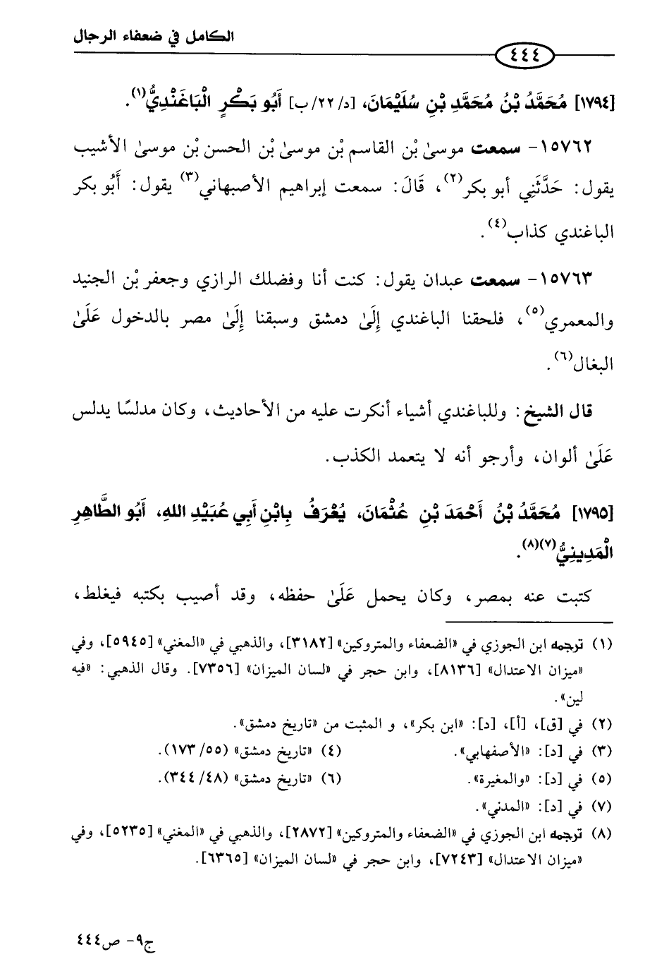 كتاب الكامل في ضعفاء الرجال لابن عدي - الرشد (اسم الجزء: 9)