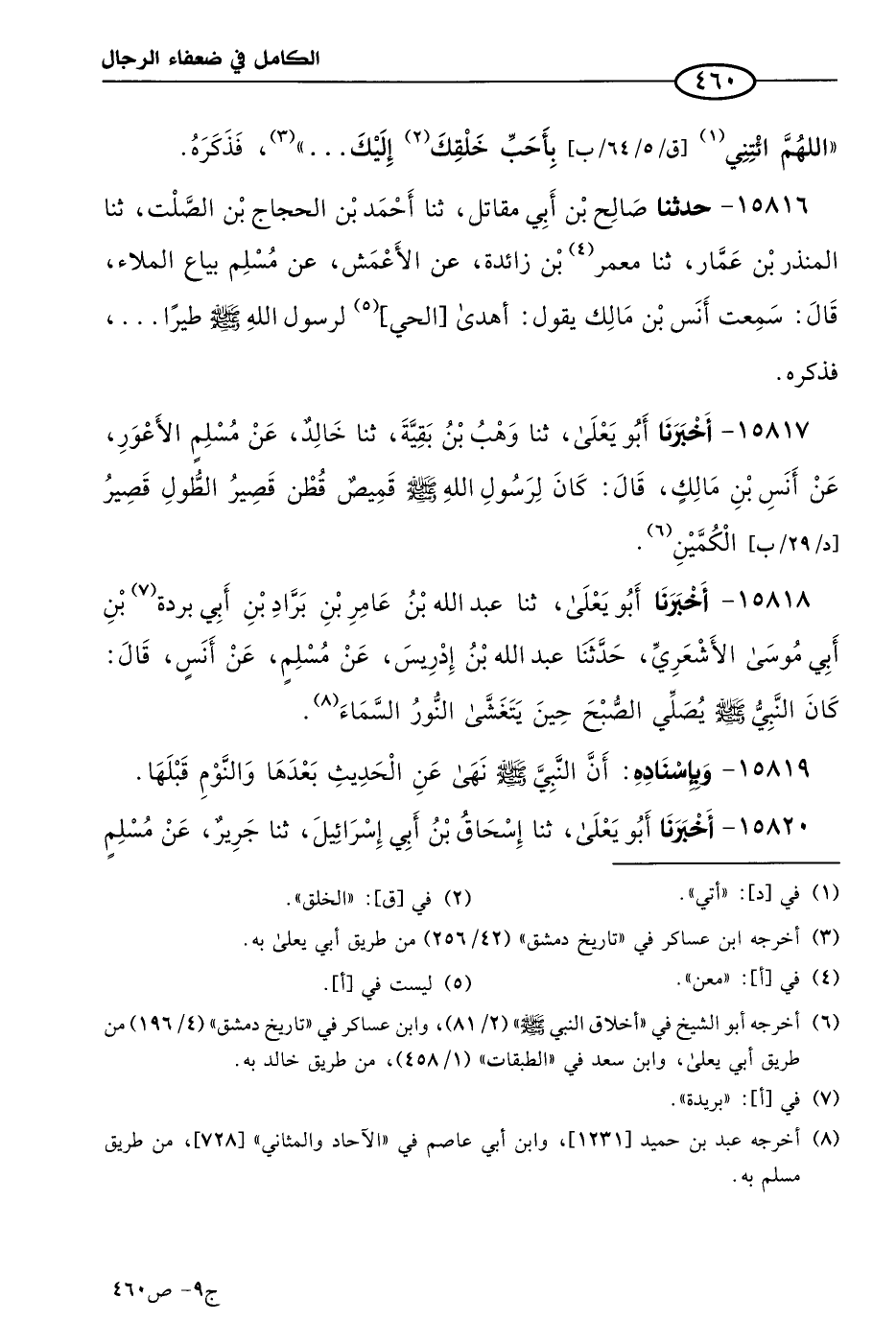 كتاب الكامل في ضعفاء الرجال لابن عدي - الرشد (اسم الجزء: 9)