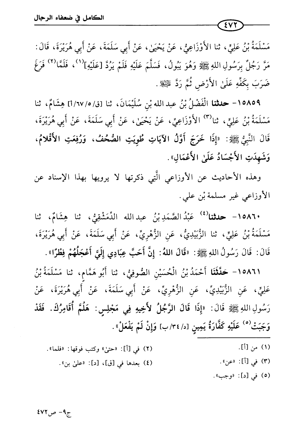 كتاب الكامل في ضعفاء الرجال لابن عدي - الرشد (اسم الجزء: 9)