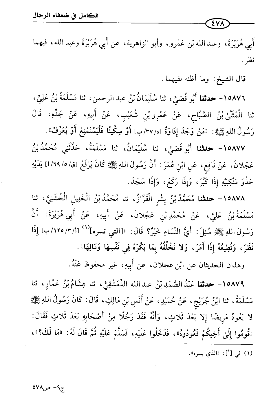 كتاب الكامل في ضعفاء الرجال لابن عدي - الرشد (اسم الجزء: 9)