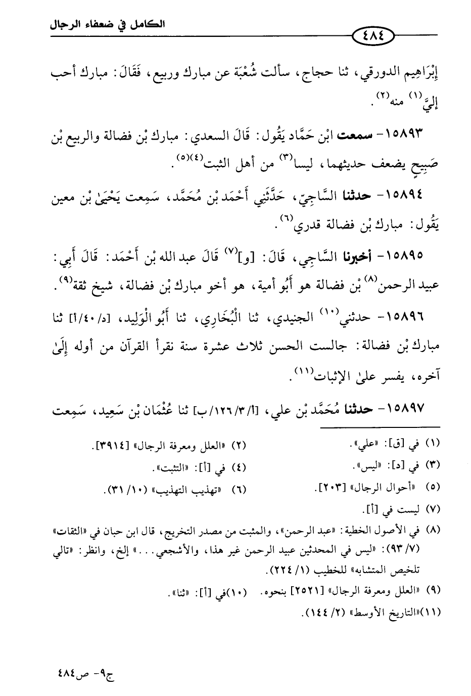 15893 - سمعتُ ابن حماد، يقول: قال السعدي: مبارك بن فضالة والربيع بن صبيح يضعف حديثهما، ليسا من أهل الثبت.
