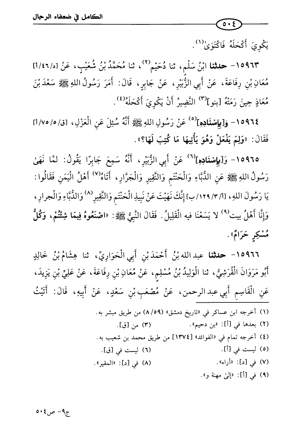 كتاب الكامل في ضعفاء الرجال لابن عدي - الرشد (اسم الجزء: 9)