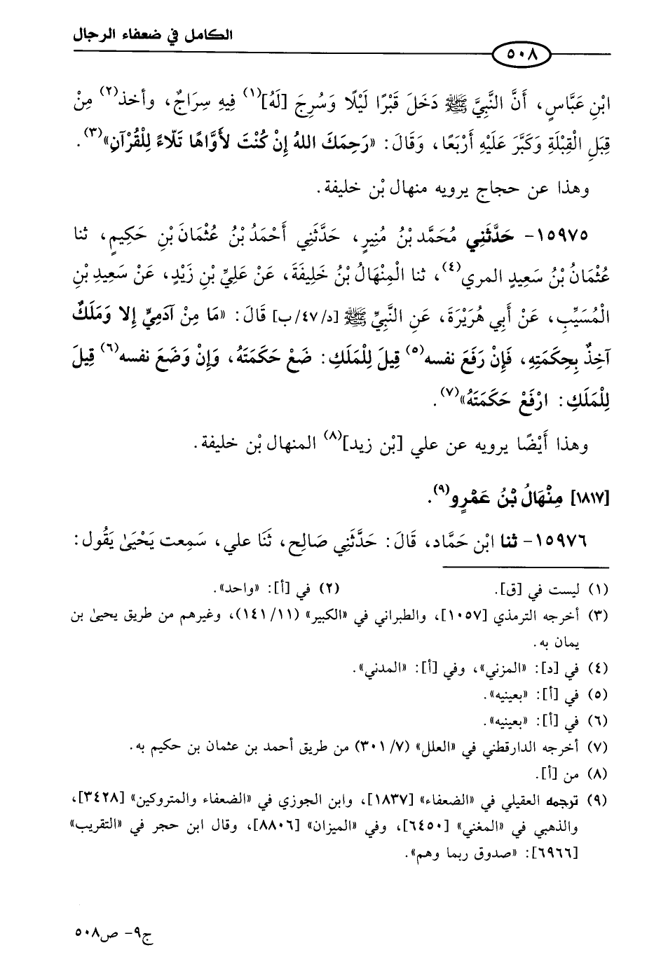 كتاب الكامل في ضعفاء الرجال لابن عدي - الرشد (اسم الجزء: 9)