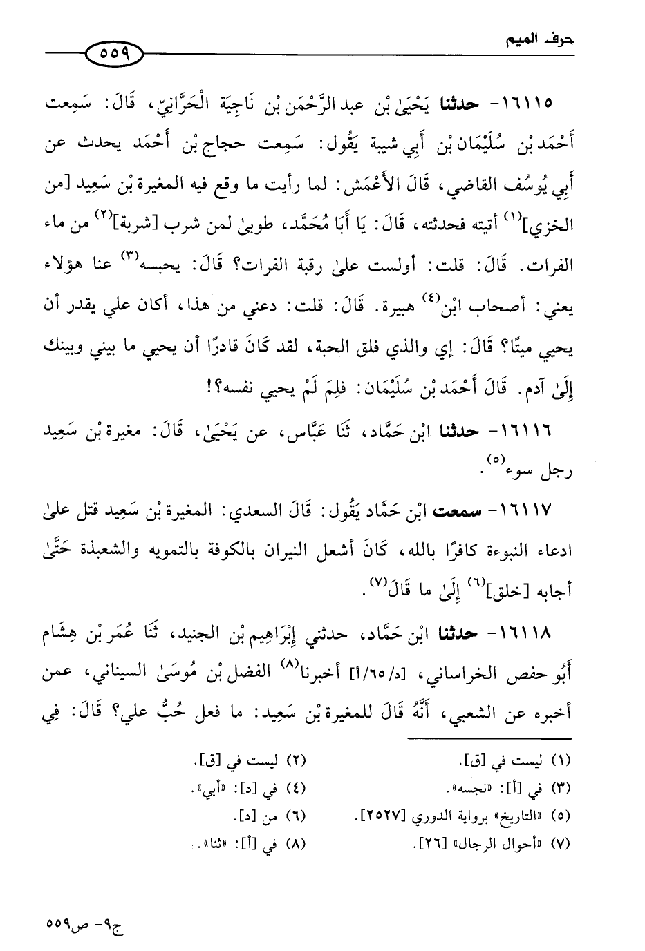 16116 - حَدثنا ابن حماد، حَدثنا عباس، عن يَحيى، قال: مغيرة بن سعيد رجل سوء.