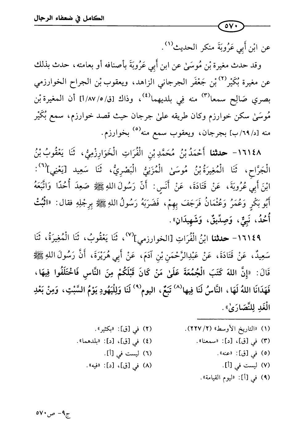 كتاب الكامل في ضعفاء الرجال لابن عدي - الرشد (اسم الجزء: 9)