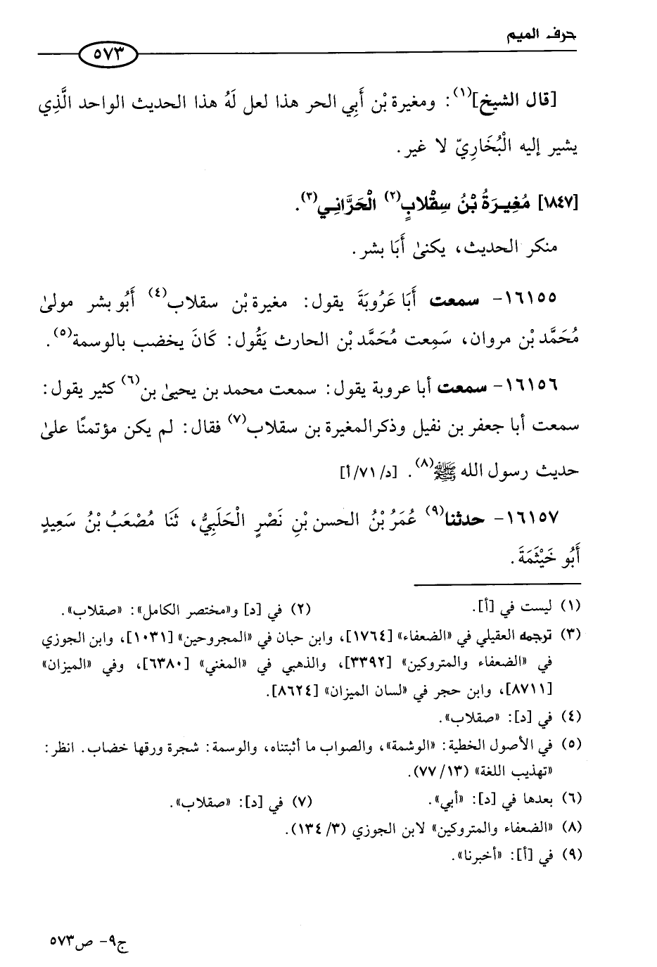 16156 - سمعت أبا عَرُوبة، يقول: سَمعتُ مُحمد بن يَحيى بن كثير، يقول: سَمعتُ أبا جعفر بن نفيل، وذكر المغيرة بن سقلاب، فقال: لم يكن مؤتمنا على حديث رسول الله صَلى الله عَليه وسَلم.