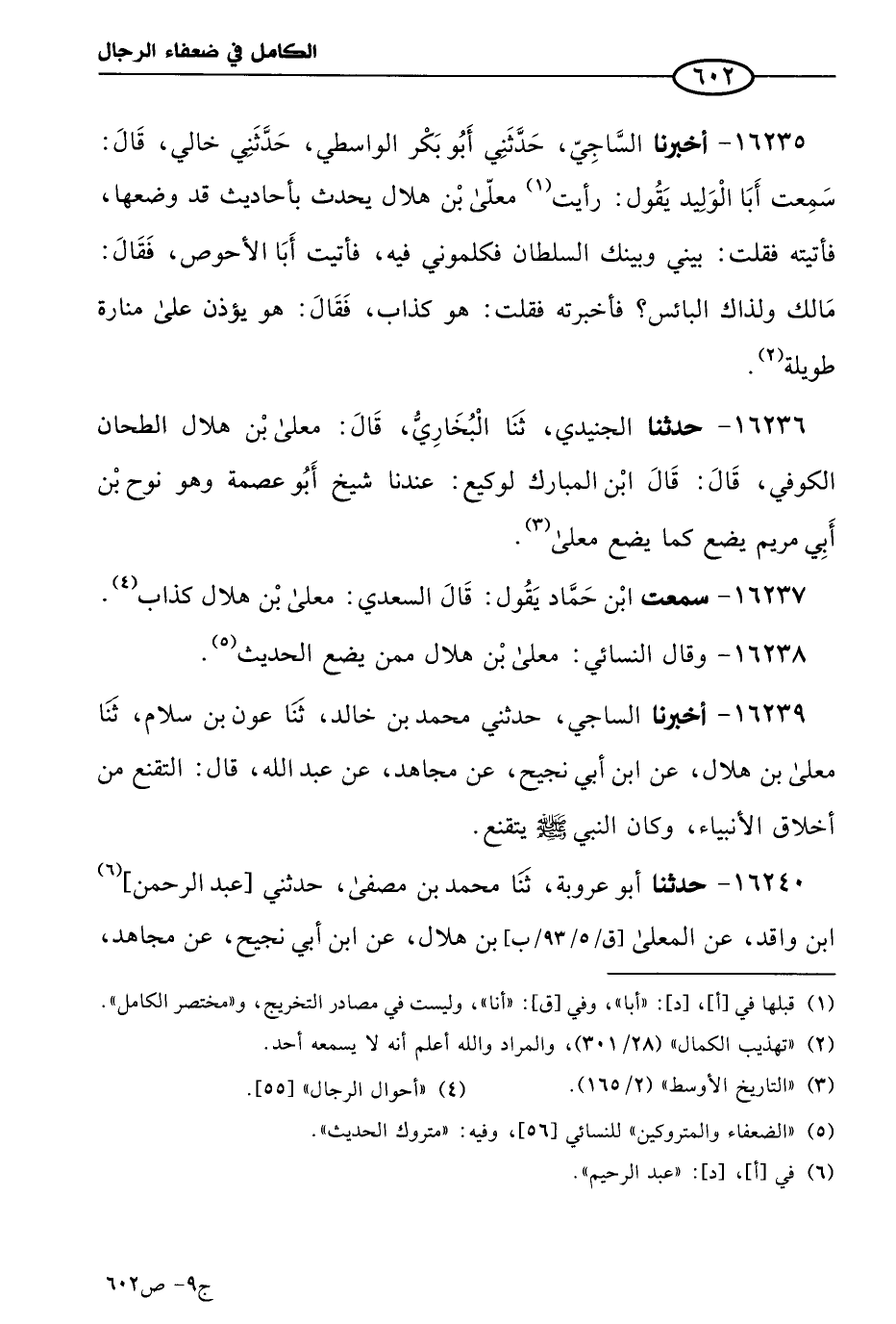 16237 - سمعتُ ابن حماد يقول: قال السعدي: معلى بن هلال كذاب.