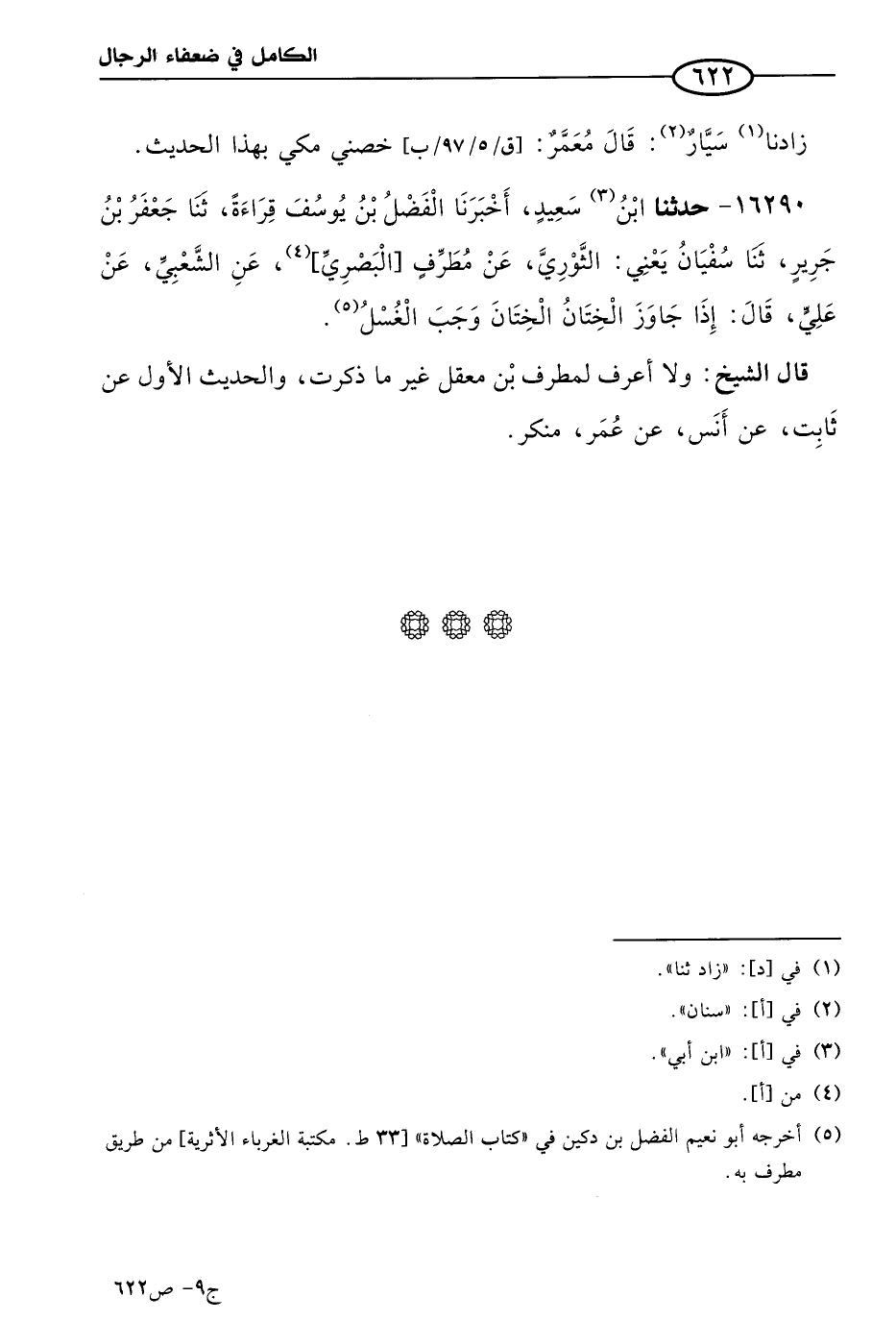 16290 - حَدثنا ابن سعيد، أخبرنا الفضل بن يوسف قراءة، حَدثنا جعفر بن جرير، حَدثنا سفيان، يعني الثَّوري، عن مطرف البصري، عن الشعبي، عن علين قال: إذا جاوز الختان الختان وجب الغسل.