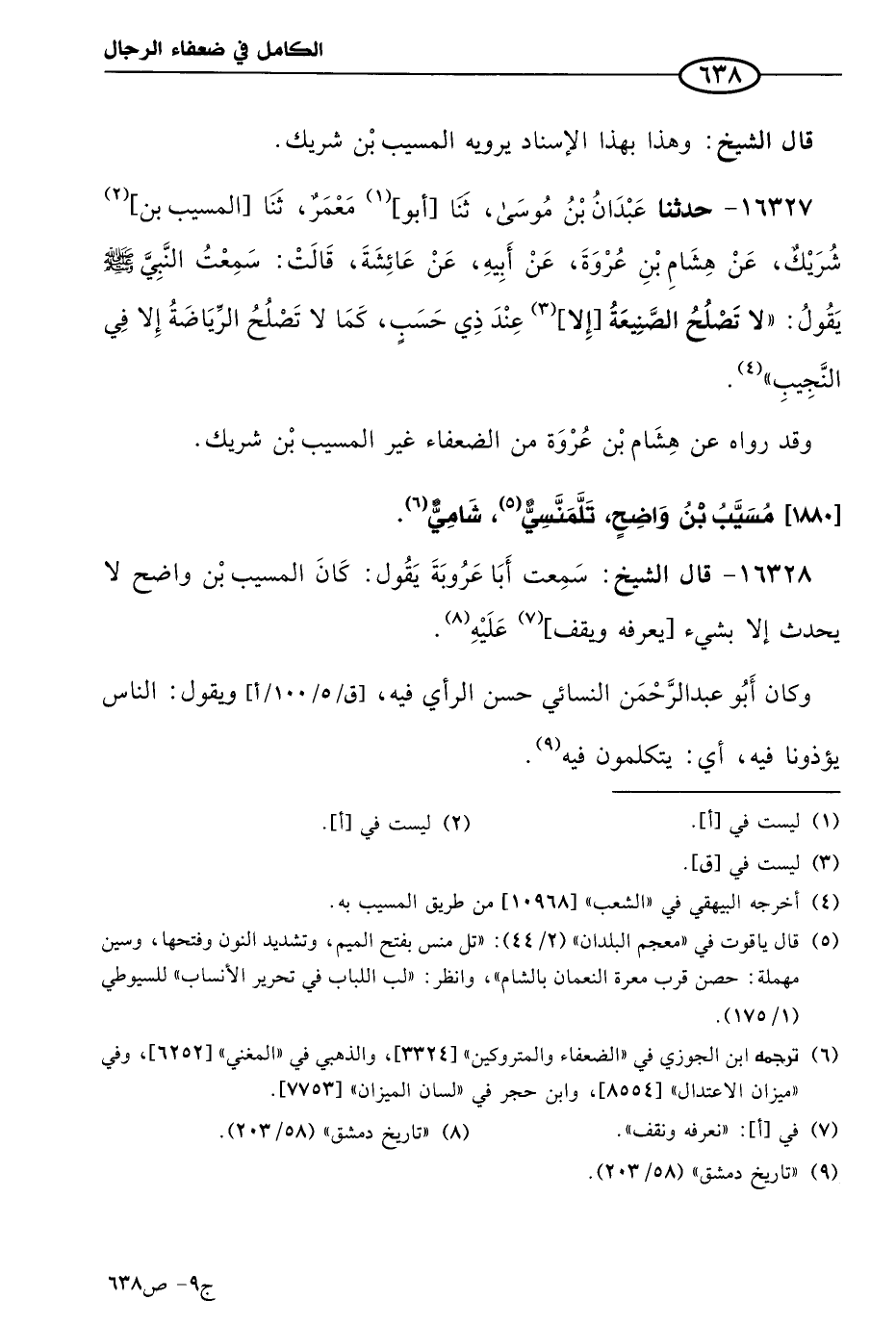 وقد رواه عن هشام بن عروة من الضعفاء غير المُسَيَّب بن شَريك.