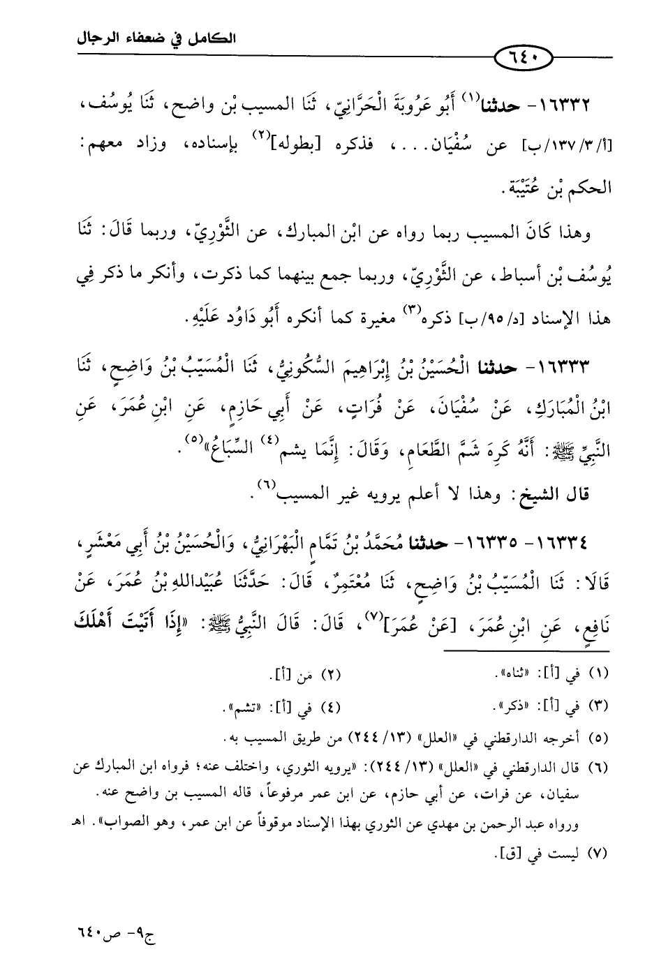 16332 - حدثنا أَبو عَرُوبة الحراني، حَدثنا المُسَيَّب بن واضح، حَدثنا يوسف، عن سفيان، فذكره بطوله، بإسناده، وزاد معهم: الحكم بن عُيَينة.