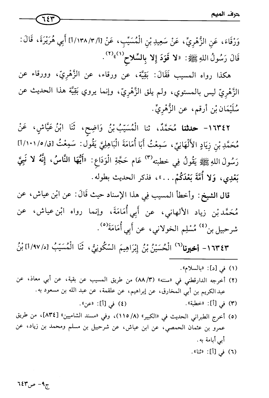 قال الشيخ: وأخطأ المُسَيَّب في هذا الإسناد، حيث قال: عن ابن عياش، عن مُحمد بن زياد الألهاني، عن أبي أُمامة، وإنما رواه ابن عياش، عن شرحبيل بن مسلم الخولاني، عن أَبي أُمامة.
