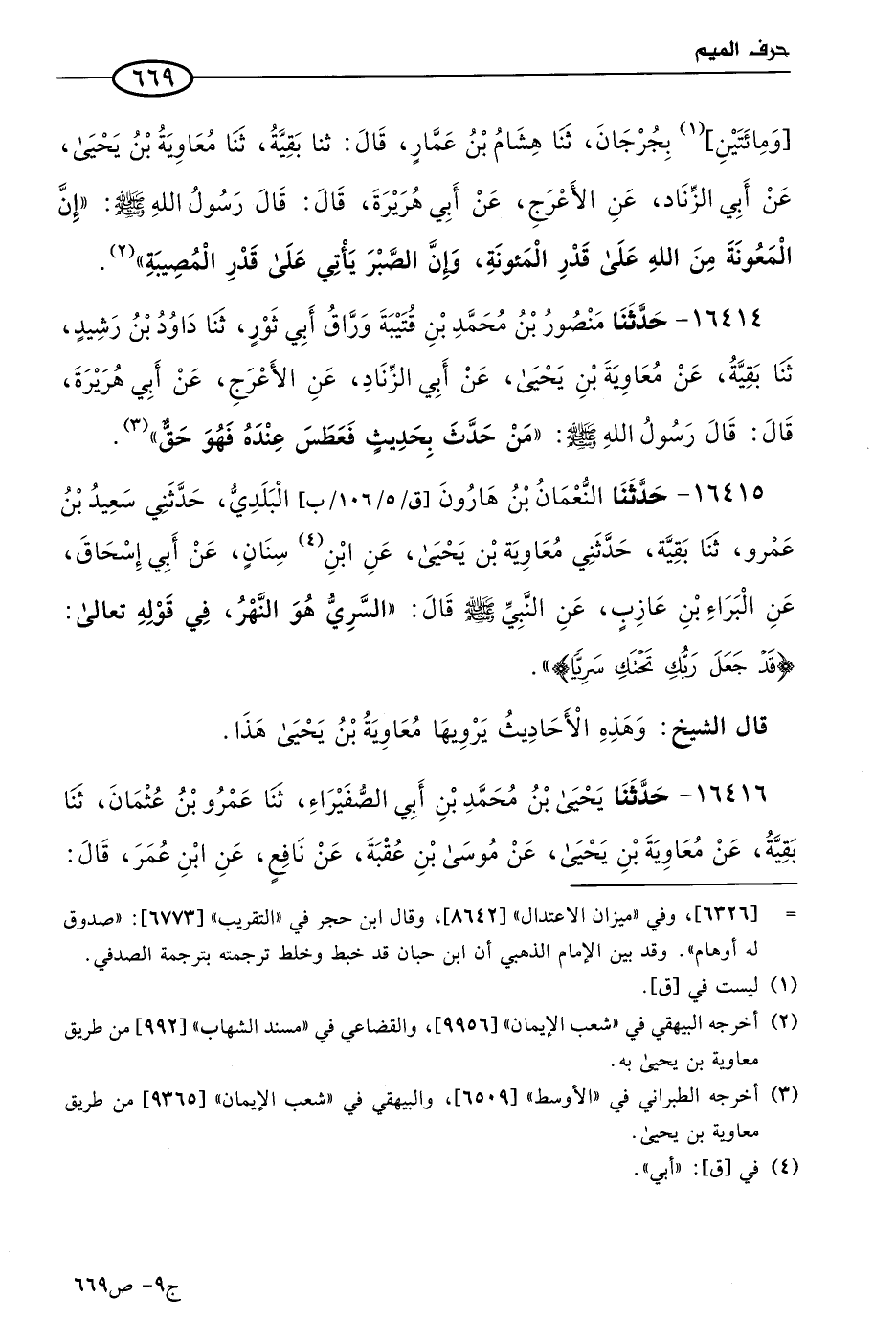 قال الشيخ: وهذه الأحاديث يرويها معاوية بن يَحيى هذا.