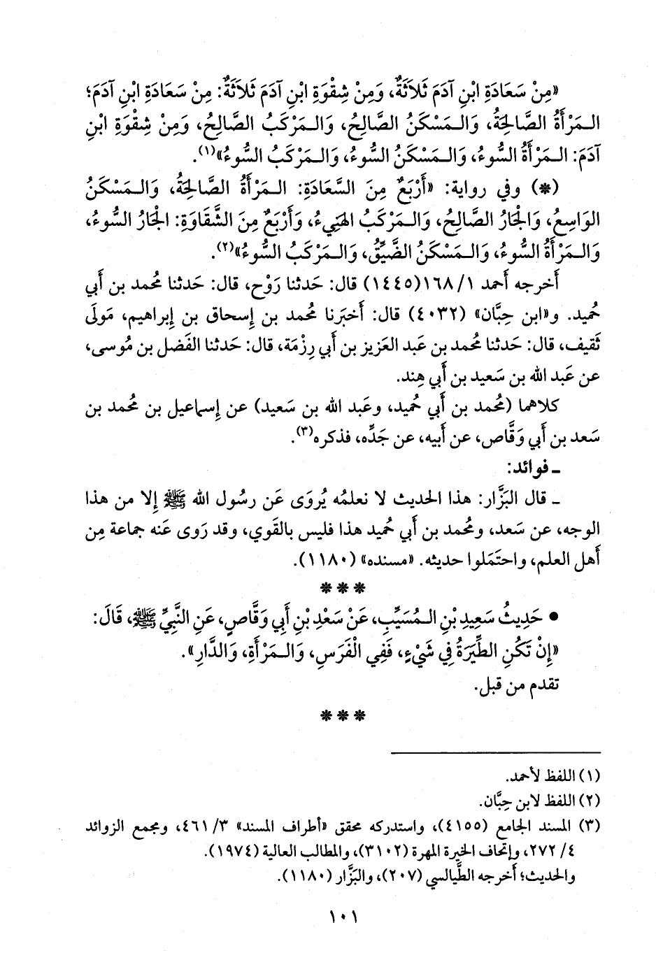 • حديث سعيد بن المُسَيب، عن سعد بن أبي وقاص، عن النبي صَلى الله عَليه وسَلم قال: