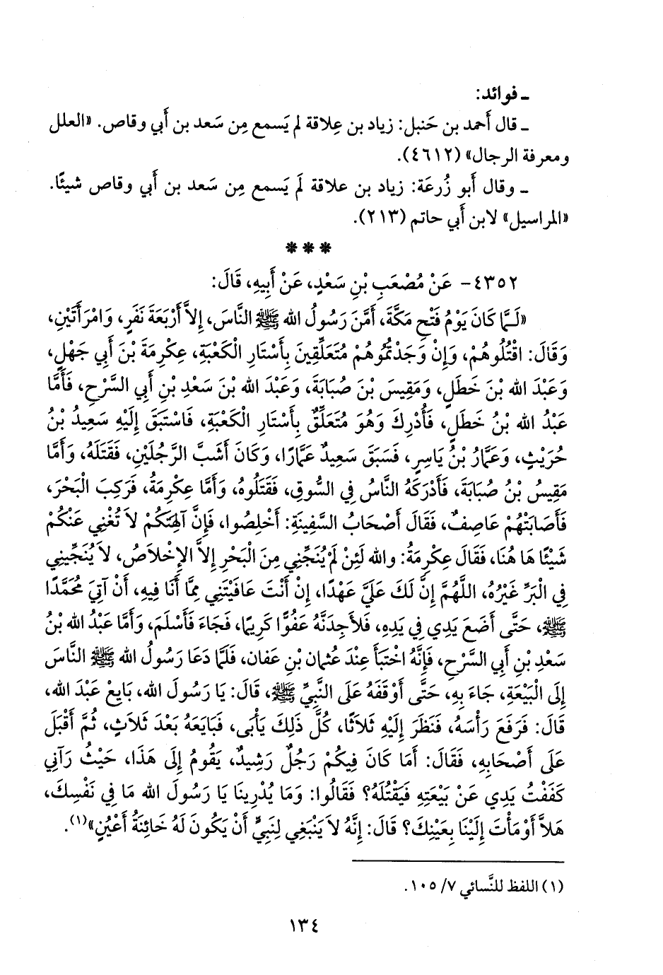 - قلنا: إِسناده ضعيفٌ؛ قال أحمد بن حنبل: زياد بن عِلاقة لم يسمع من سعد بن أبي وقاص. «العلل ومعرفة الرجال» (٤٦١٢).