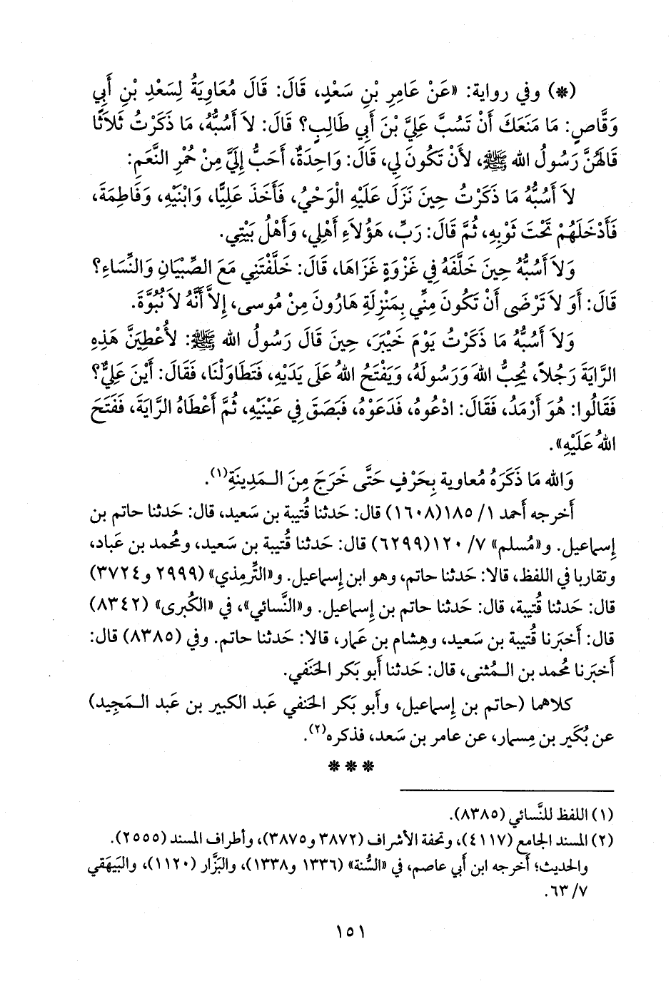 كلاهما (حاتم بن إسماعيل, وأَبو بكر الحنفي عبد الكبير بن عبد المجيد) عن بكير بن مسمار، عن عامر بن سعد، فذكره (¬٢).