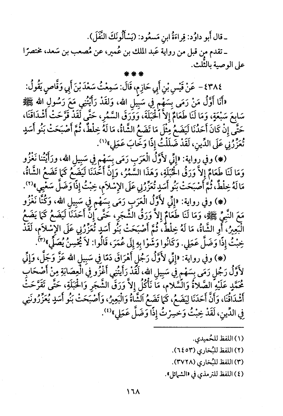 ٤٣٨٤ - عن قيس بن أبي حازم, قال: سمعت سعد بن أبي وقاص يقول: