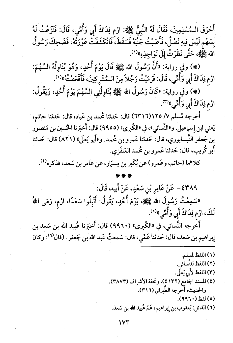 «سمعت رسول الله صَلى الله عَليه وسَلم يوم أحد، يقول: أنبلوا سعدا، ارم، رمى الله لك، ارم فداك أبي وأمي» (¬١).