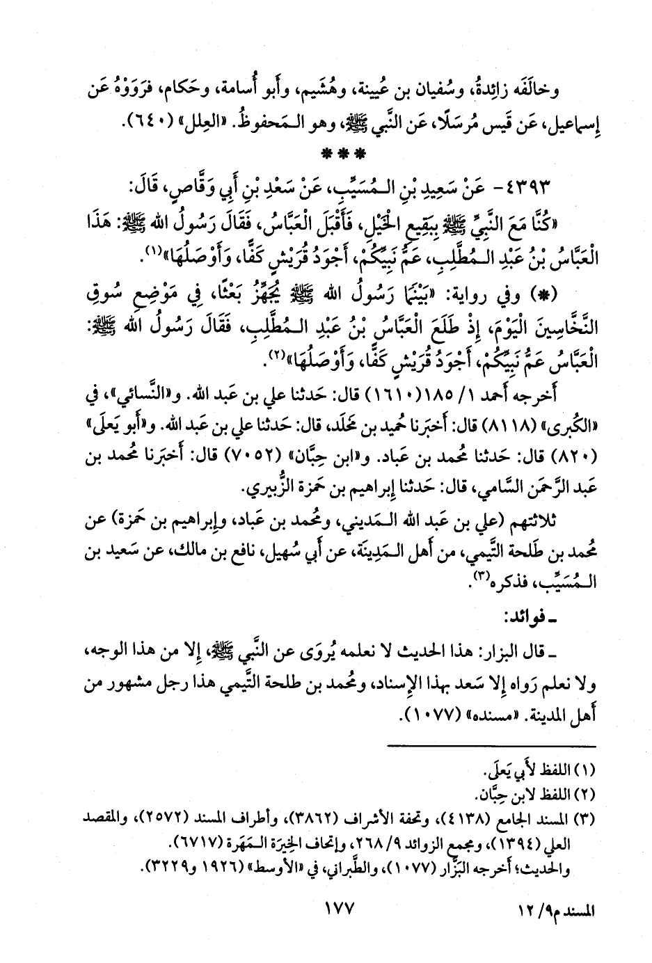 (¬٤) المسند الجامع (٤١٣٨)، وتحفة الأشراف (٣٨٦٢)، وأطراف المسند (٢٥٧٢)، والمقصد العَلي (١٣٩٤)، ومَجمَع الزوائد ٩/ ٢٦٨، وإتحاف الخِيرَة المَهَرة (٦٧١٧).
