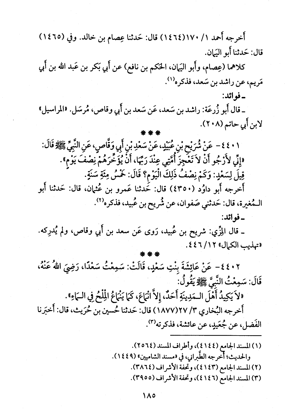 ٤٤٠١ - عن شريح بن عبيد، عن سعد بن أبي وقاص، عن النبي صَلى الله عَليه وسَلم قال: