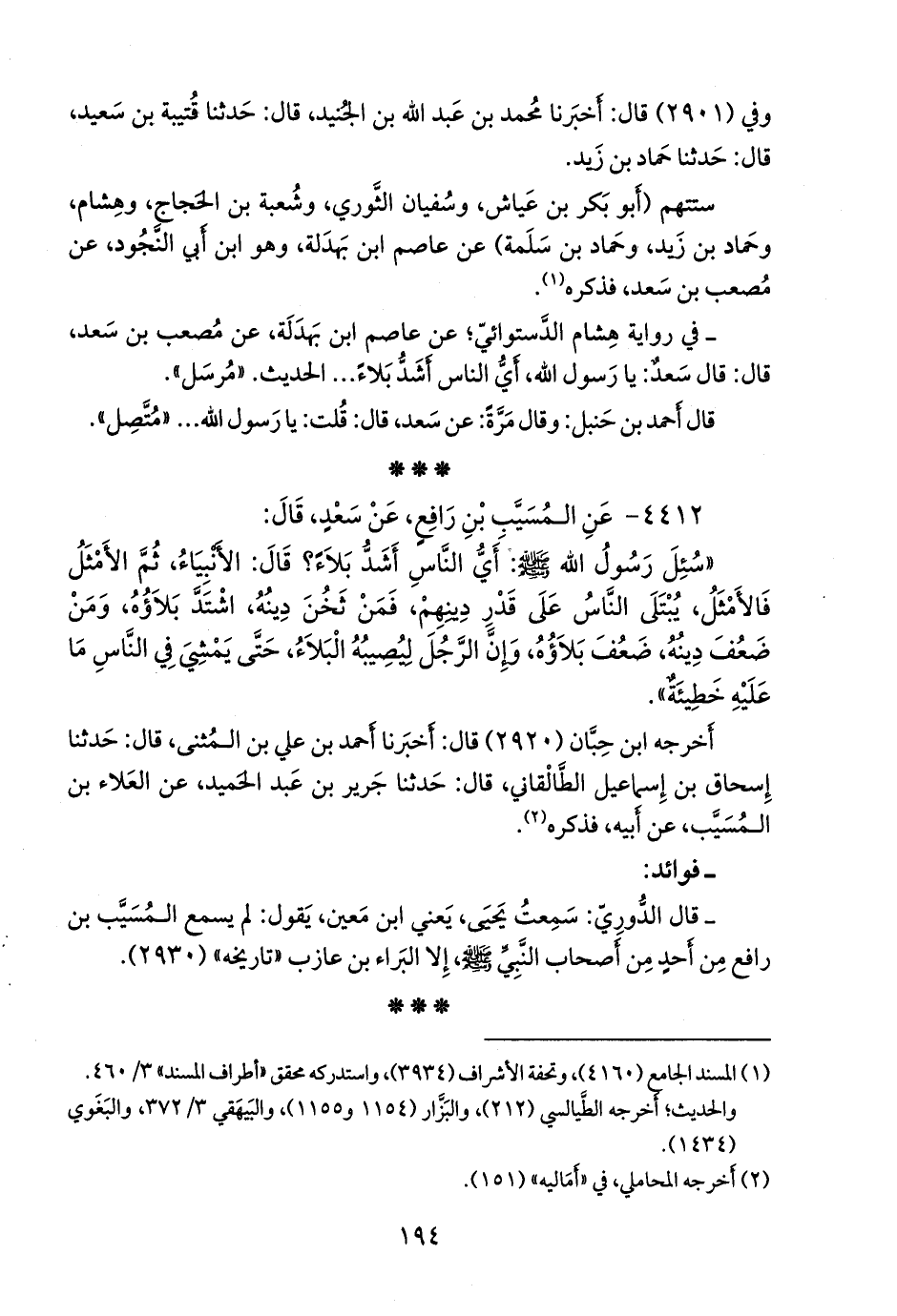 ٤٤١٢ - عن المُسَيَّب بن رافع، عن سعد، قال: