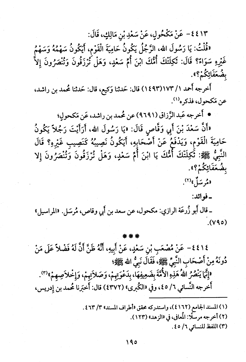 ٤٤١٣ - عن مكحول، عن سعد بن مالك، قال: