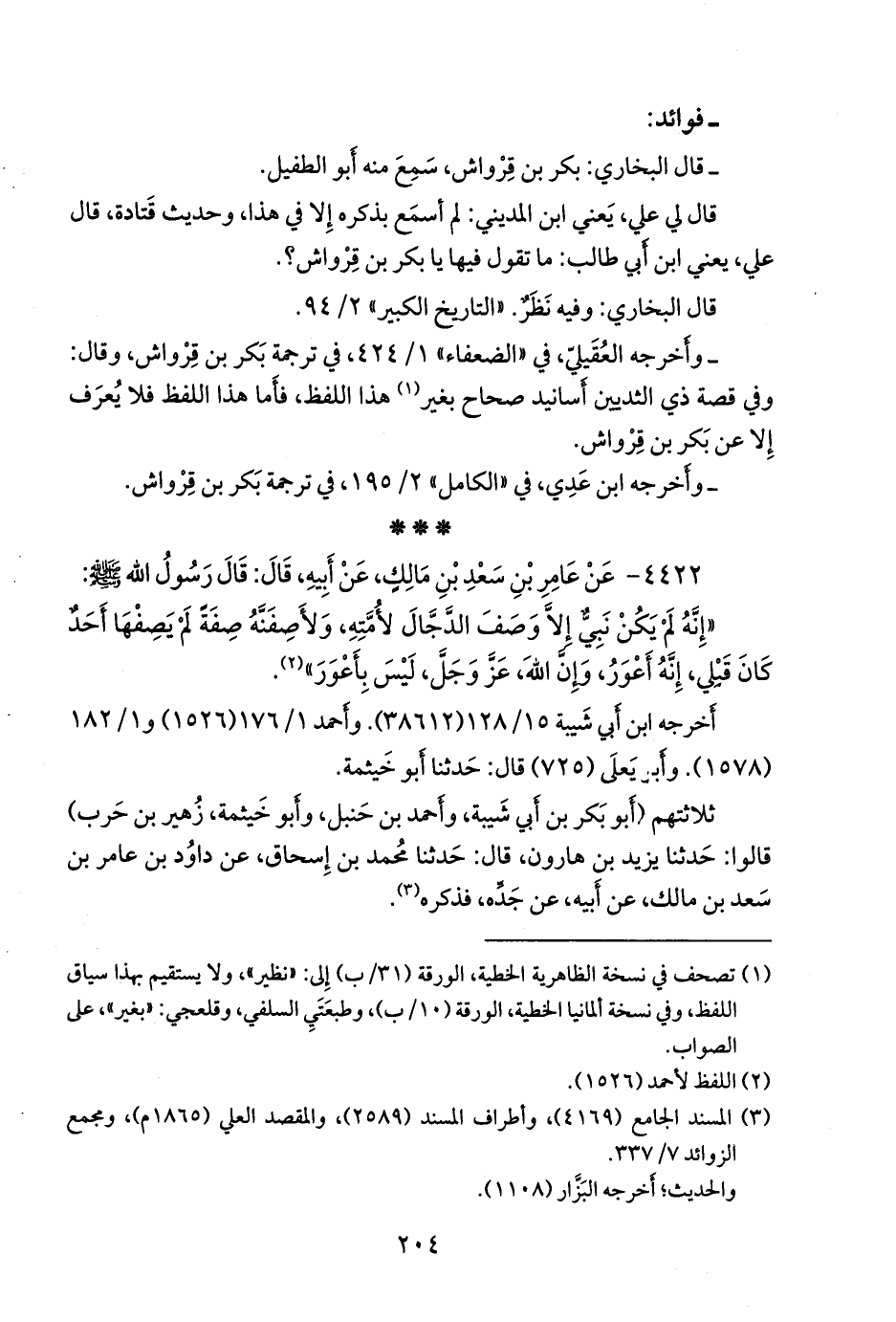 ثلاثتهم (أَبو بكر بن أبي شيبة، وأحمد بن حنبل، وأَبو خيثمة زهير بن حرب) عن يزيد بن هارون، قال: حدثنا محمد بن إسحاق، عن داود بن عامر بن سعد بن مالك، عن أبيه، فذكره (¬٢).