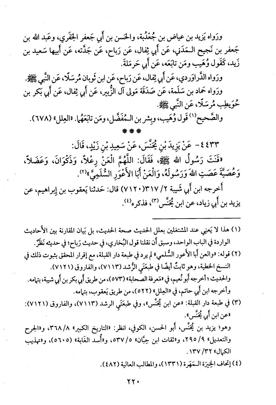 (¬١) قوله: «والعن أبا الأعور السلمي» لم يرد في طبعة دار القبلة، مع إقرار المحقق بثبوت ذلك في النسخ الخطية، وهو ثابت أيضا في طبعتي الرشد (٧١١٣)، والفاروق (٧١٢١).