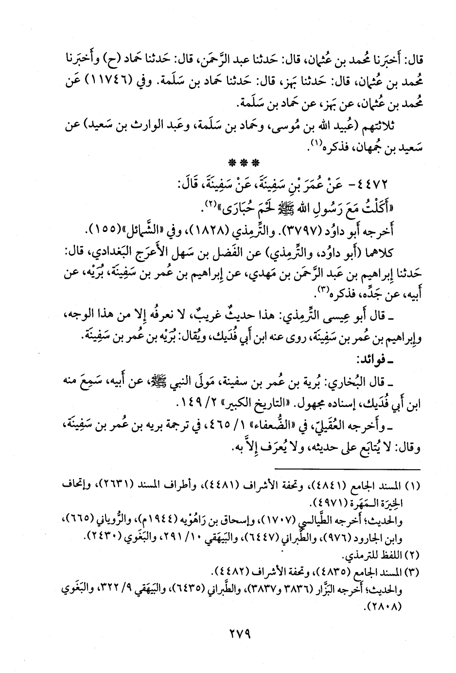 كلاهما (أَبو داود، والتِّرمِذي) عن الفضل بن سهل الأعرج البغدادي، قال: حدثنا إبراهيم بن عبد الرَّحمَن بن مهدي، عن إبراهيم بن عمر بن سفينة بُرَيه، عن أبيه، فذكره (¬٢).