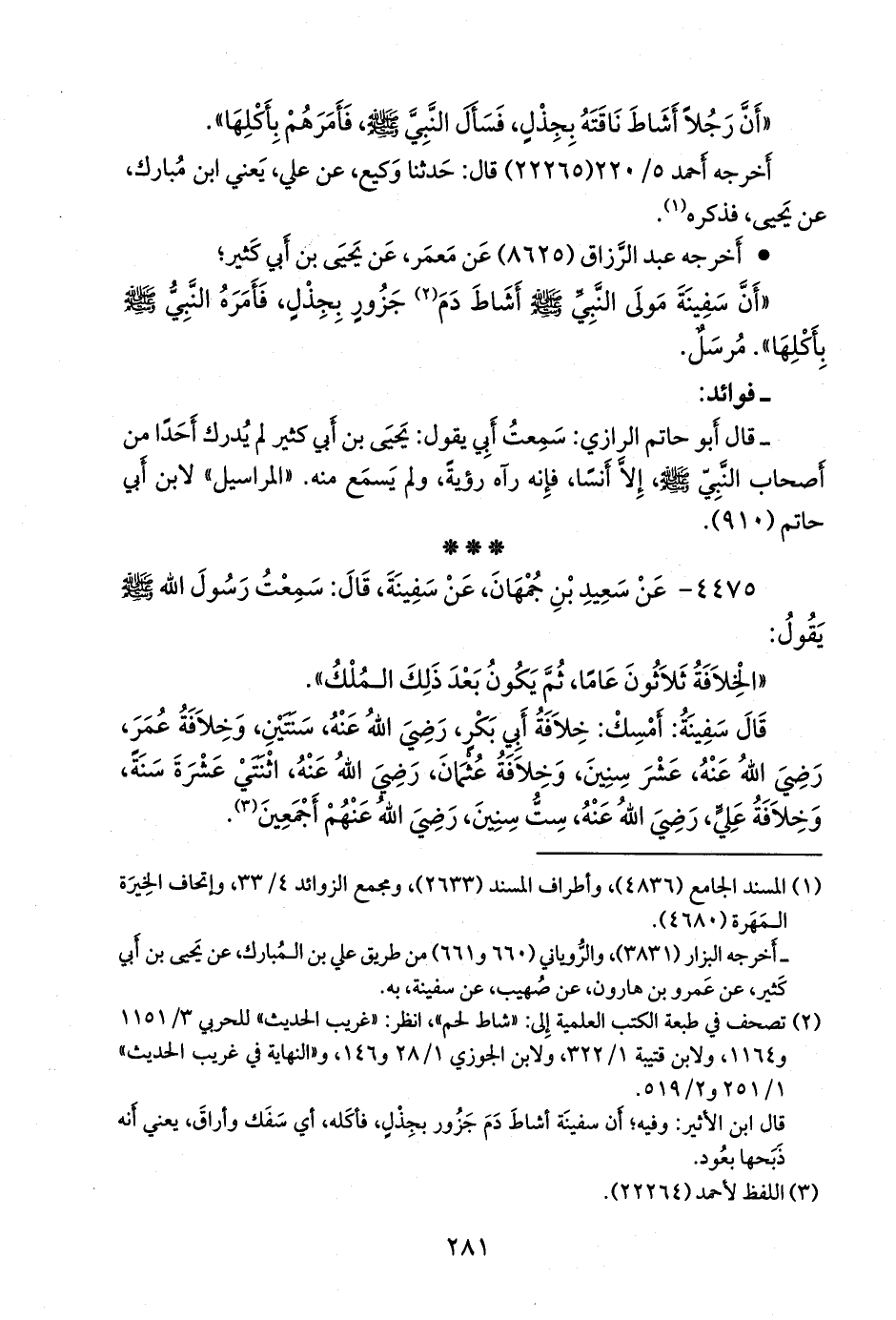 ٤٤٧٥ - عن سعيد بن جُمهان, عن سفينة, قال: سمعت رسول الله صَلى الله عَليه وسَلم يقول: