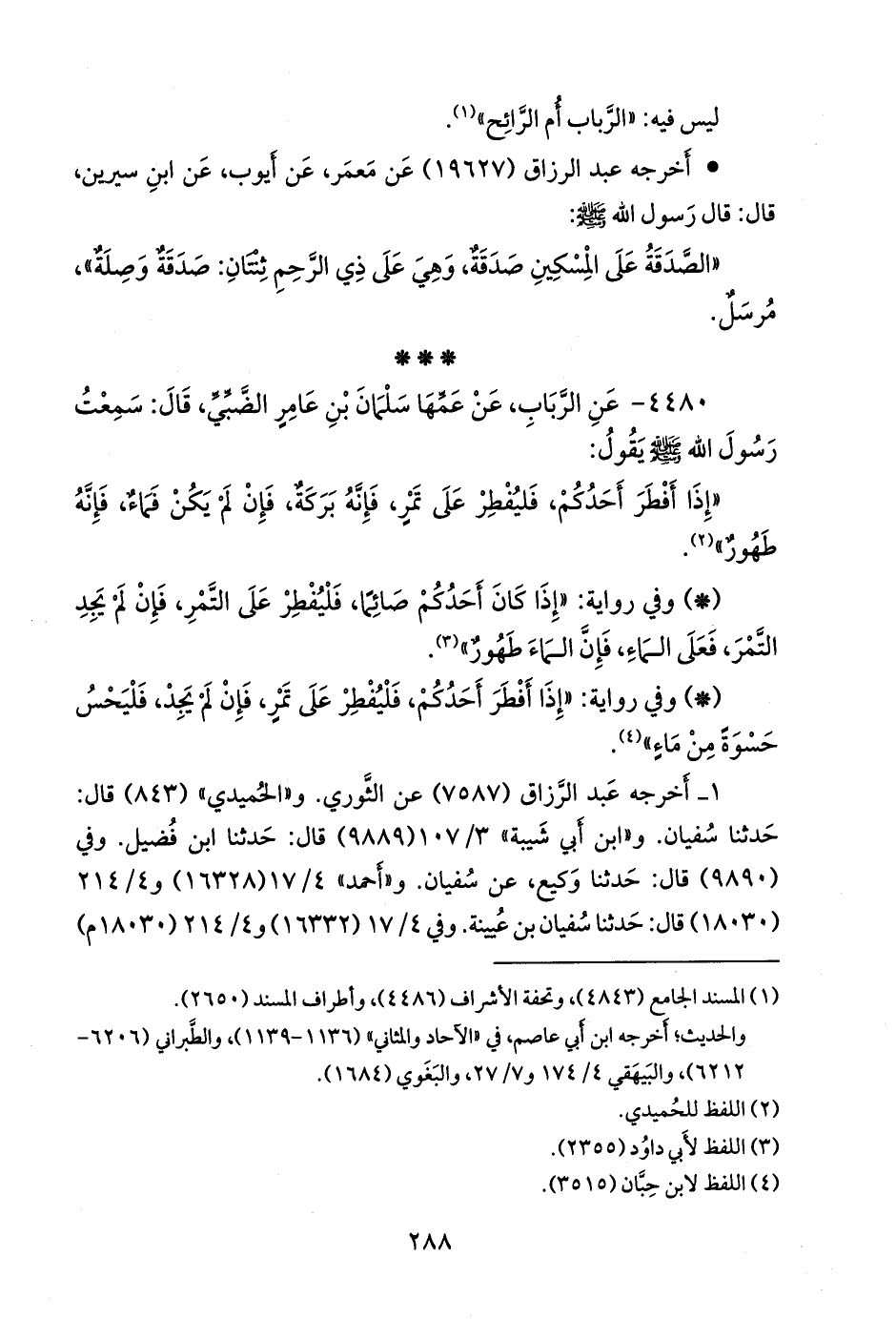 قال: حدثنا وكيع, قال: حدثنا سفيان. وفي ٤/ ١٨ (١٦٣٣٥) و ٤/ ٢١٤ (١٨٠٣٢ و ١٨٠٣٨) قال: حدثنا أَبو معاوية. و «الدَّارِمي» (١٨٢٥) قال: أخبرنا أَبو النعمان، قال: حدثنا ثابت بن يزيد. و «ابن ماجة» (١٦٩٩) قال: حدثنا عثمان بن أبي شيبة، قال: حدثنا عبد الرحيم بن سليمان، ومحمد بن فضيل (ح) وحدثنا أَبو بكر بن أبي شيبة، قال: حدثنا محمد بن فضيل.